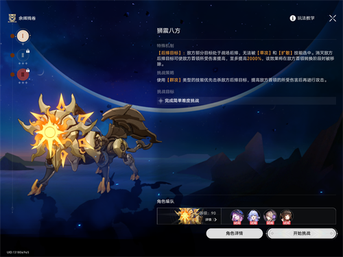 在与「狮震八方」任意难度的战斗中,我方目标累计消灭15个[后排目标]。