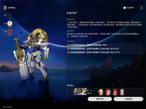 在与「巨剑守护」任意难度的战斗中,我方角色累计回复12次[生命计数]