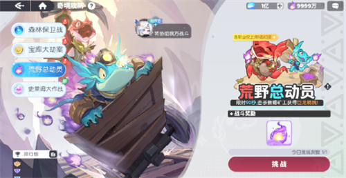 荒野总动员要想解锁,那就需要过主线5-16。荒野总动员主要是可以获得巨龙精魄,这就是幻灵在进阶过程中的关键材料。第1次通关之后就可以送钻石,后续在每一次挑战时都可以根据击杀的数量,然后拿到精魄。累计击杀的数量达标之后,还可以额外的获得进度奖励,单局杀200只蜥蜴就可以获得100个钻石,还有100个金币。300只解锁200个钻石,还有100个精魄,充到400只就可以拿到100个钻石,还有300个精魄。奖励在叠加之后还是比较划算的。