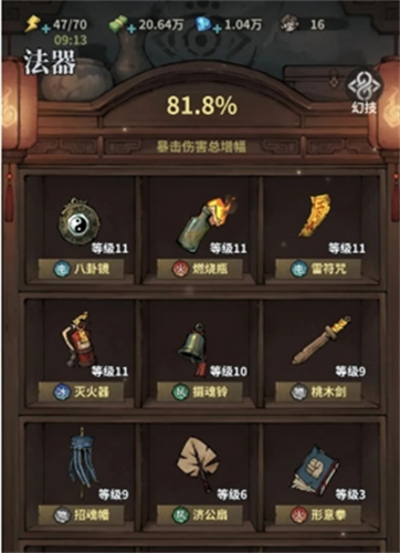 总结一下,现有的法器除了特殊机制的招魂幡、桃木剑,普通强度非常低,优先升级枪械