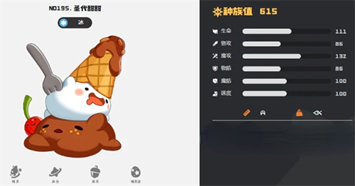 队伍当中圣代甜甜则是节奏调控者,100+的速度值让它具备超强的先手优势,在特性上与卡瓦重的冻结有相同作用,可以大大提升冰冻的覆盖率,尤其是在雪地环境下使用,可以使冻结层数额外+2;推荐携带技能“贯手+霜天”,通过贯手提升物理压制,霜天则可以对抗毒系选手,能够大大增强生存韧性;而团队当中的冰冻布鲁斯主要负责封锁敌方的战术弹性,在成功触发“挽留”后,可以强制禁用对手换宠行为。