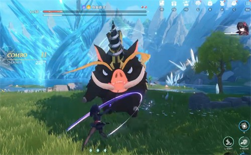 恰好源千代是一位暗系输出,她的普通攻击都具备着高倍率斩击特性,配合上流火区域是能够提升释放倍率,满段普攻后可以非常顺滑地衔接上连击,对于BOSS是非常强劲的打击。在铁鬓霸主的第一阶段,源千代只要使用【星鸣斩】这一拔刀技能进行多段攻击,此时,如果看到地面上有电圈的话,马上接入二技能,这个是位移技能,可以在闪避的同时对野猪造成伤害,并叠加上【减速】的DEBUFF,还有一定概率给自己减伤,基本上这样一套操作下来就能打完第一阶段。