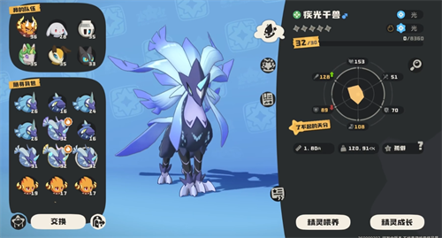 疾光千兽的强度不单是靠单个数值来表现出来的,它还依靠技能之间的联动以及队伍整体的配合来体现出来,三种形态的实战性能都很好。合理使用技能带来的回血和增益效果,使它能很好地面对大部分高难度副本以及竞技场的挑战。在阵容搭配上,将它放在光系体系里,依靠队友的辅助来最大程度地发挥它的输出上限。不管是清除小怪还是对抗强大的BOSS,只要操作得当,疾光千兽都会表现出统治级的威力。