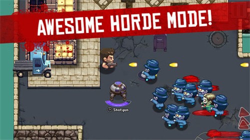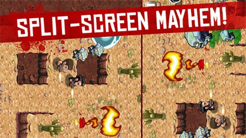 2、独特的双人僵尸游戏在同一屏幕上,与朋友或伙伴并肩作战,并通过点击虚拟按钮操作游戏。